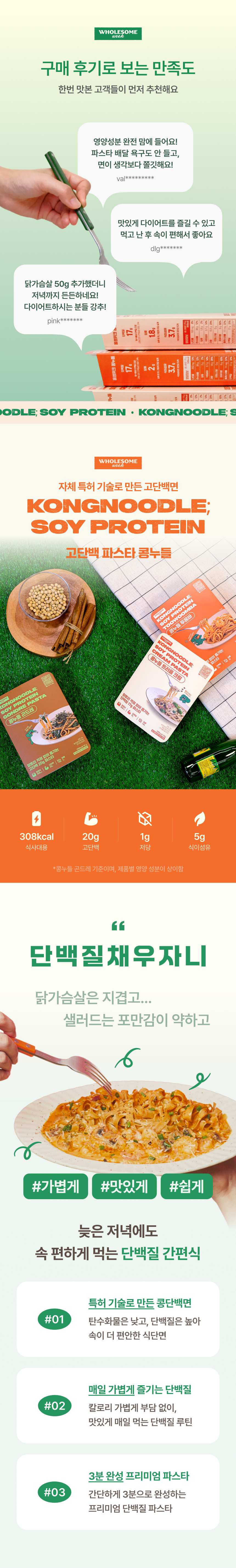 [홀썸위크] 고단백 파스타 콩누들 다이어트 단백질 프로틴 식단 3종 세트